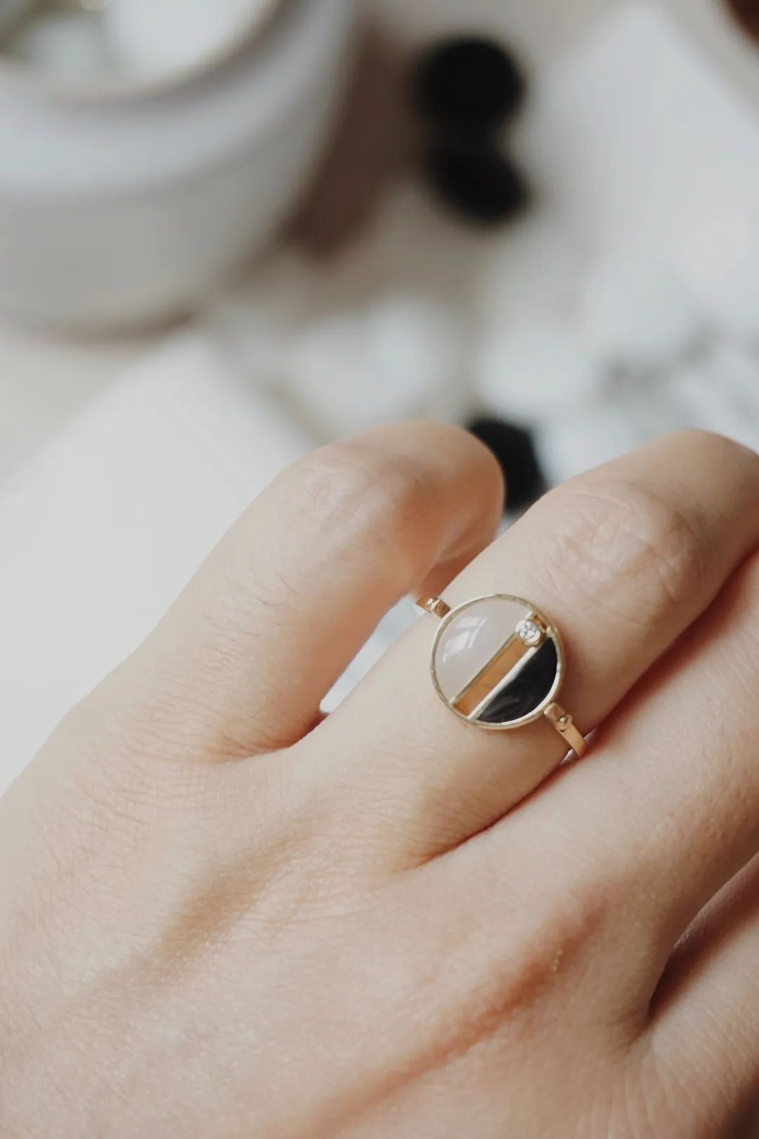 The Game of Go Black & White Hetian Jade Flip Ring